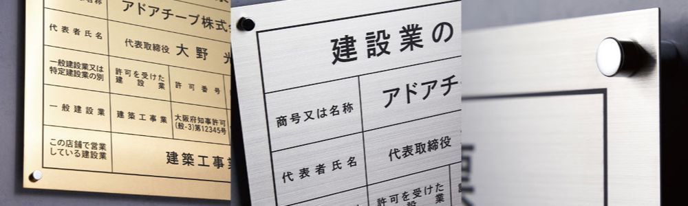 建設業の許可票、宅地建物取引業者票、建築士事務所登録票などあらゆる種類の免許看板の作成が可能です。