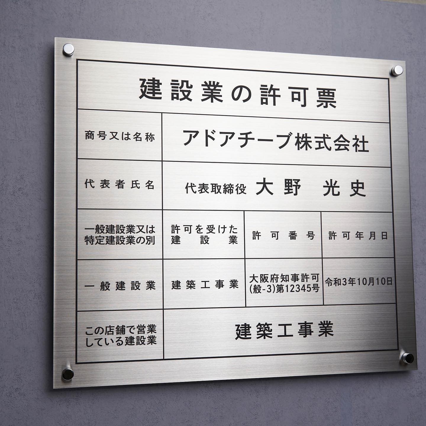 何よりもデザインとオシャレにこだわった弊社の免許看板だからこそ、今回の金・銀の免許看板も素材感とデザインに特化し、こだわりの1枚に仕上げました。